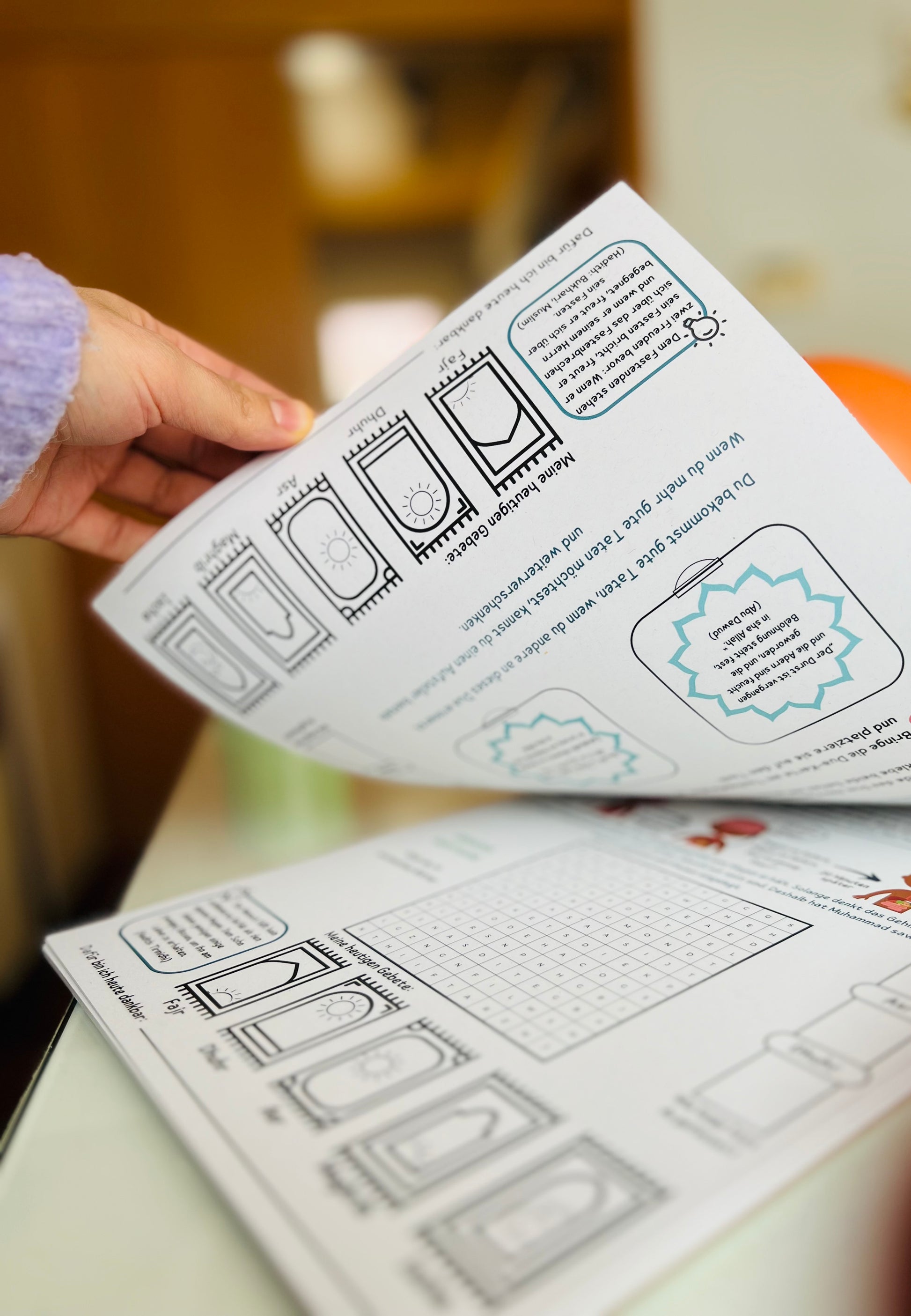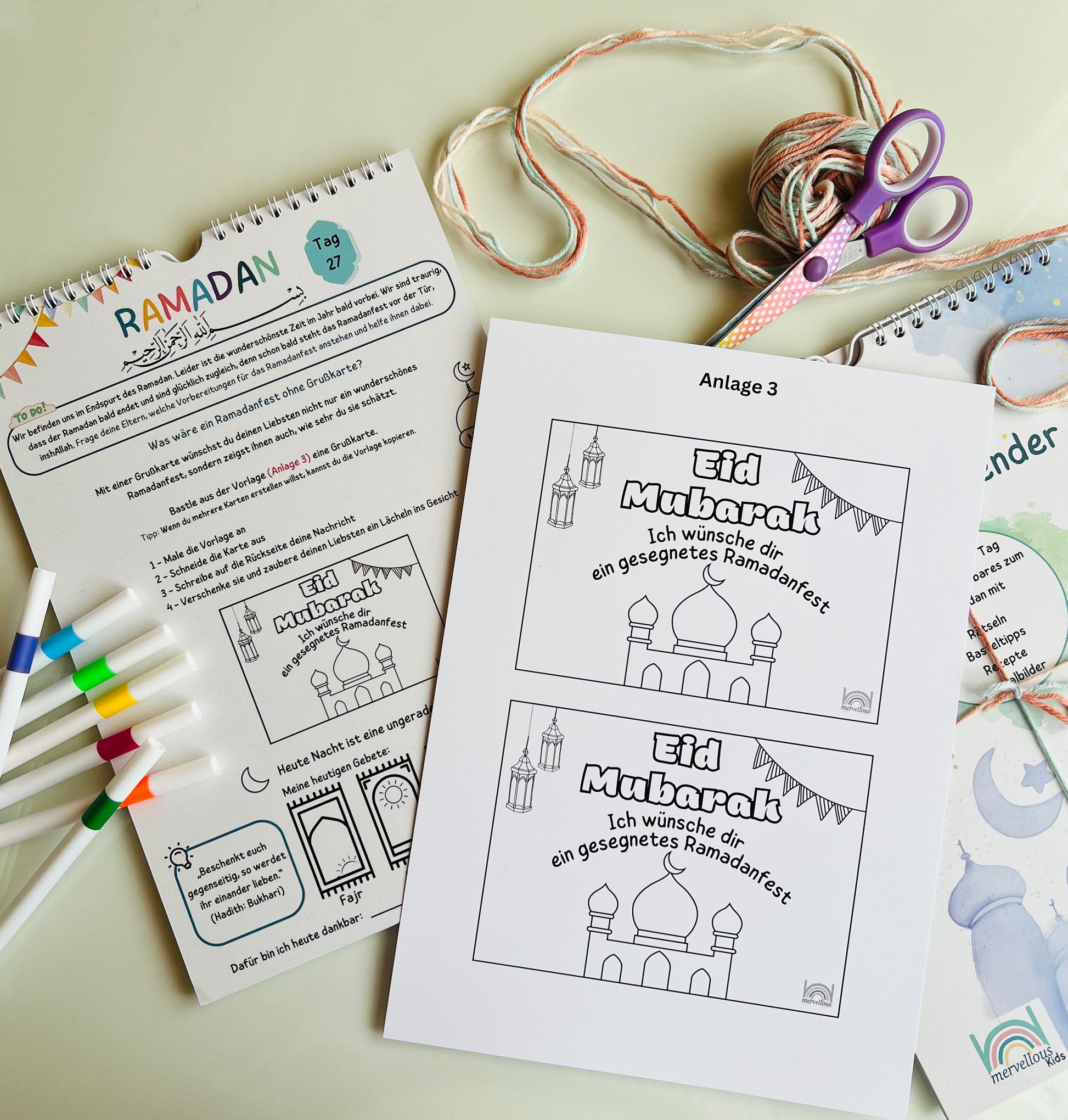 Zudem ist eine Anlage für eine Karte für das Tischgebet enthalten, die das gemeinsame Essen während des Ramadan noch besonderer macht. Mit diesem Ramadan-Kalender wird die Zeit bis zum Fest zu einem unvergesslichen Erlebnis voller Lernen, Spielen und Schaffen.